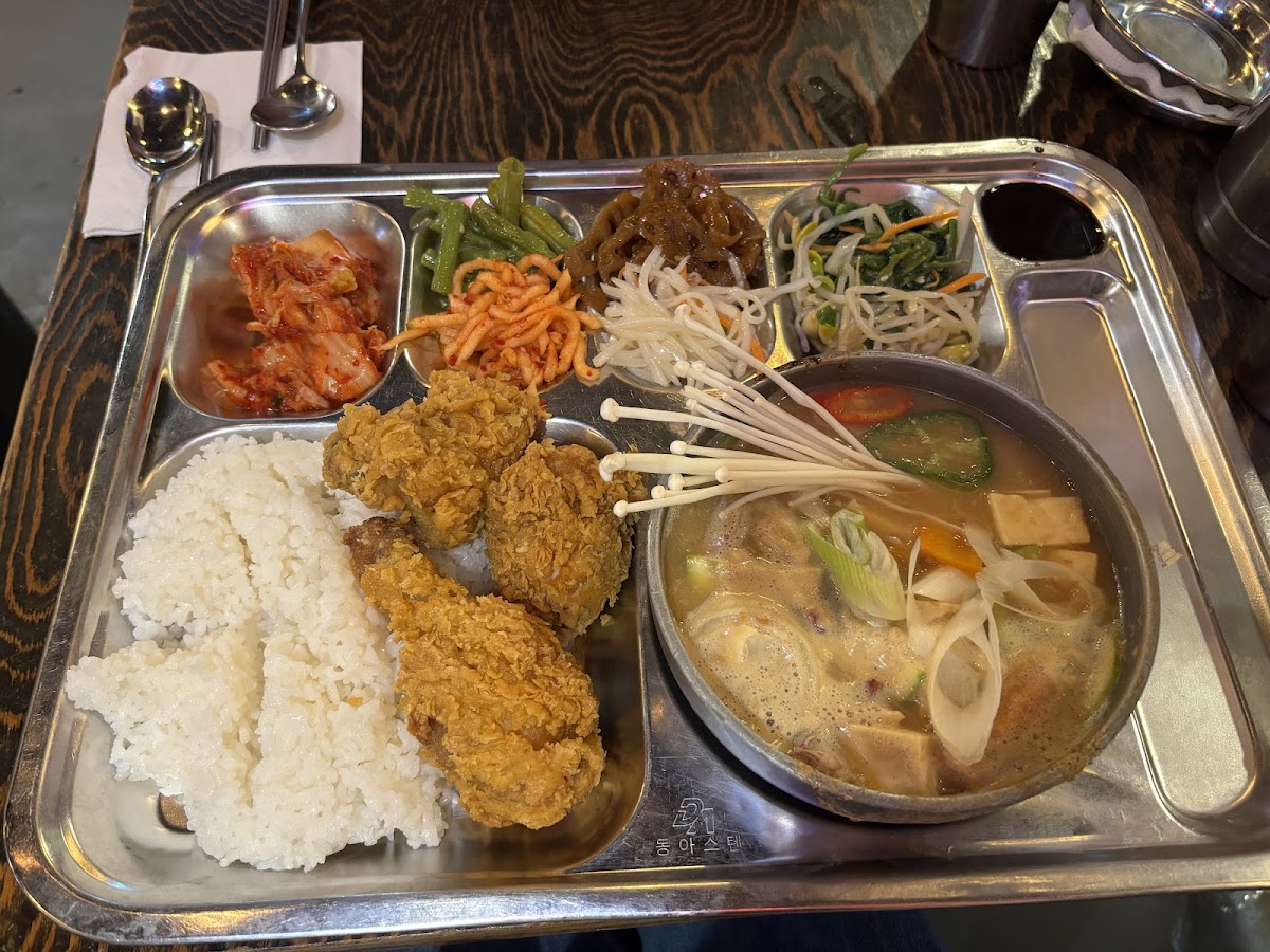 I lived in South Korea for a few years so I was excited to try this place out. The food was pretty good I ordered the bolgogi kimbop lunch special which came with side dishes and a seafood seaweed soup. They only let you use a credit card if your total cost of the meal is above 100 HK. They give you water when you arrive.